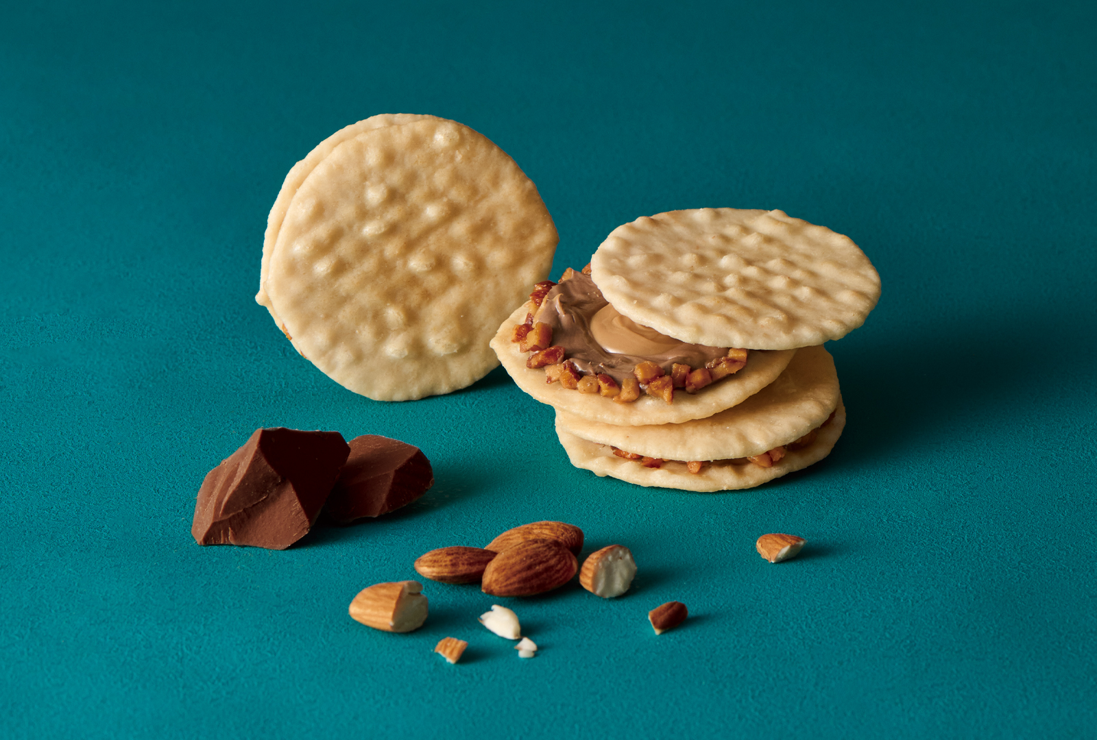 【1/9(金)発売】店舗限定!パリッカリッと香ばしさが響きあう「煎餅サンド〈チョコアーモンド〉」